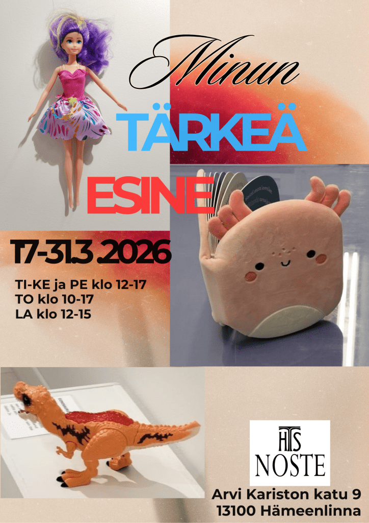 HTS Nosteessa on 17.3.–31.3. 2026 Minun tärkeä esine – päiväkotilasten oma esinenäyttely.