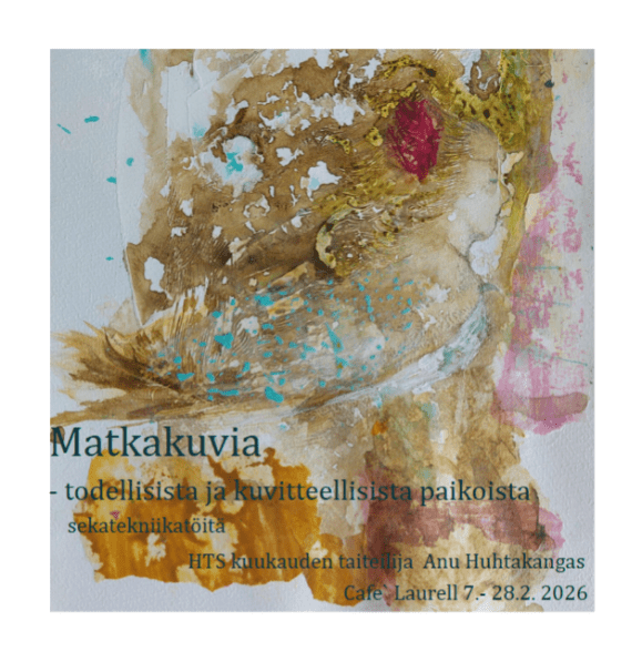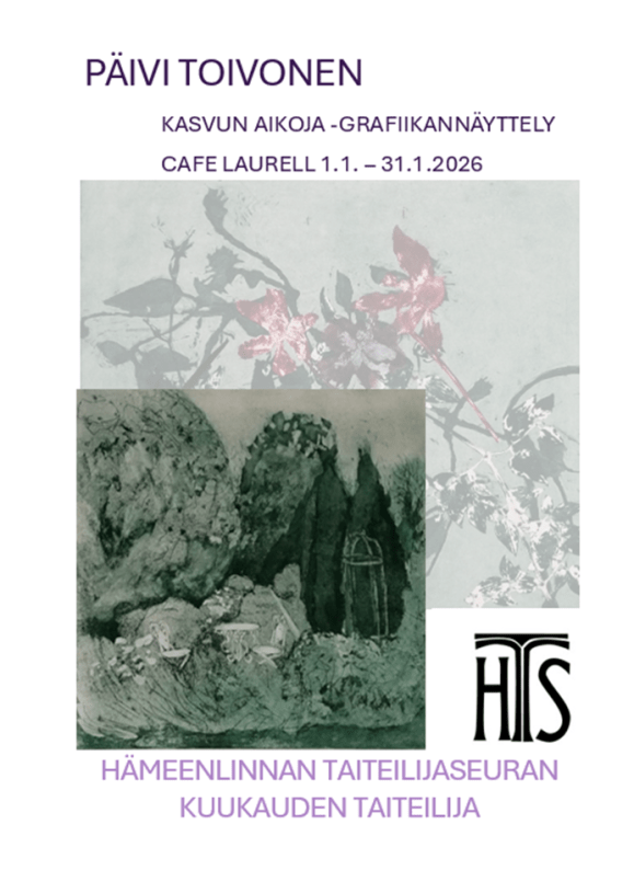 Hämeenlinnan Taiteilijaseura ry:n jäsenellä on mahdollisuus pitää näyttely Café Laurellissa, Sibeliuksenkatu 7, 13100 Hämeenlinna