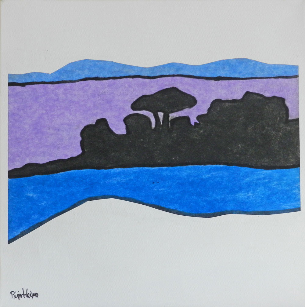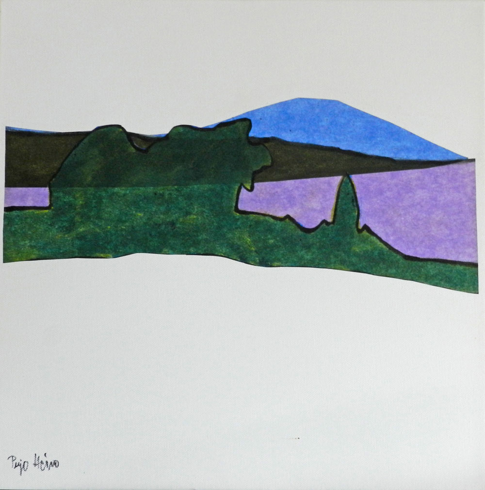 Taivaanranta I-III, 2023, kollaasi kankaalle (omista materiaaleistani), 40×40 cm.